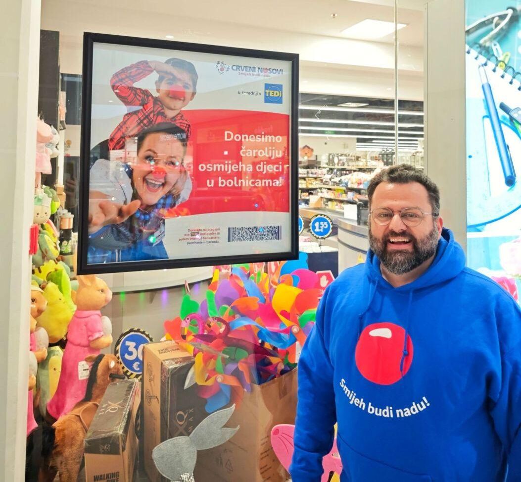 Važan dio te priče nastaje na mjestu na kojem ga možda najmanje očekujemo, na blagajni trgovine. U 104 TEDi poslovnice diljem Hrvatske postavljene su donacijske kutijice za CRVENE NOSOVE, u kojima kupci svakodnevno mogu ostaviti svoj doprinos. Upravo tu započinje put koji završava osmijehom djeteta u bolničkoj sobi.