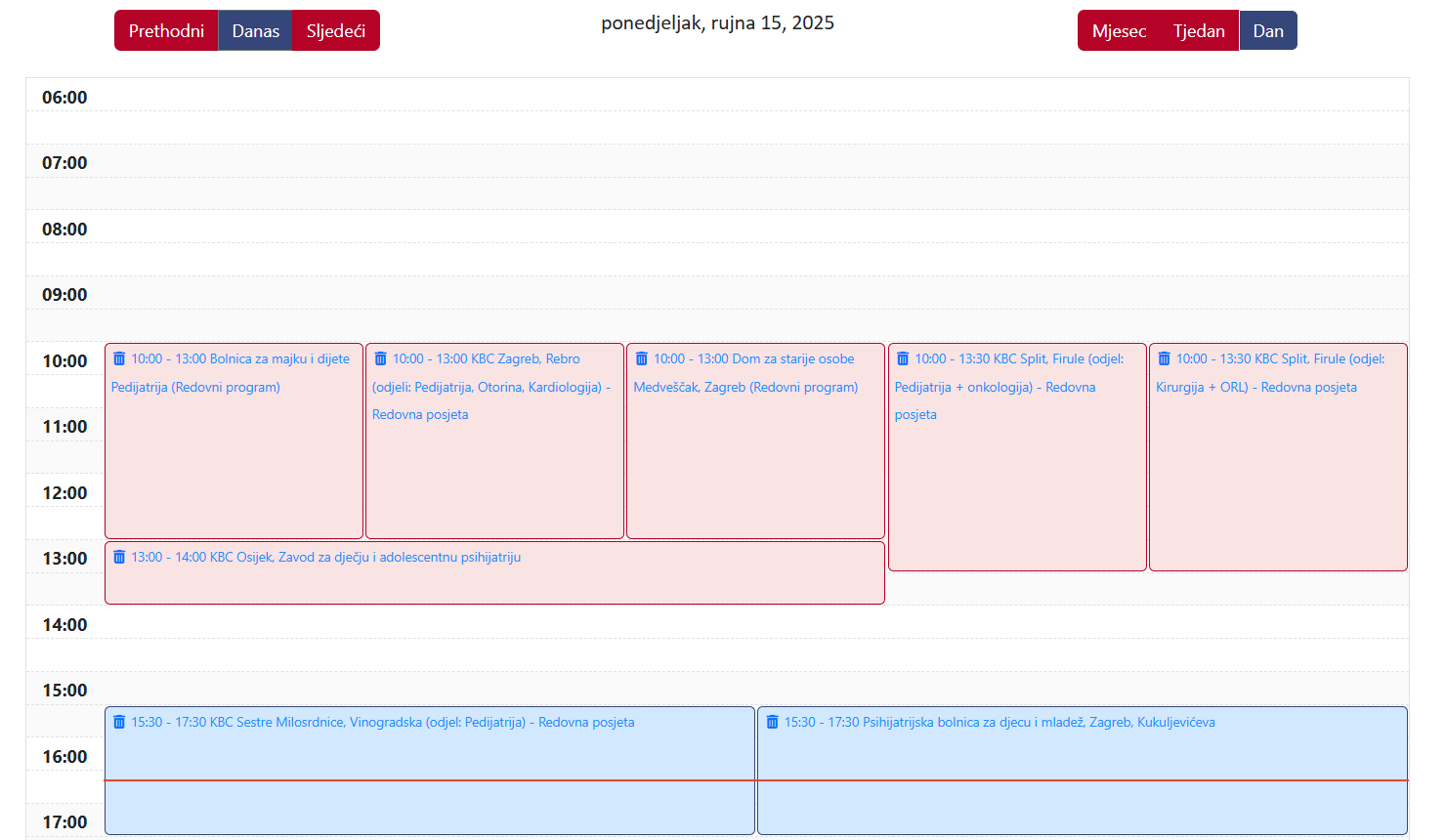 Aplikacija u koju se upisuju lokacije klaunovskih posjeta radi lakše organizacije – pregled određenog dana