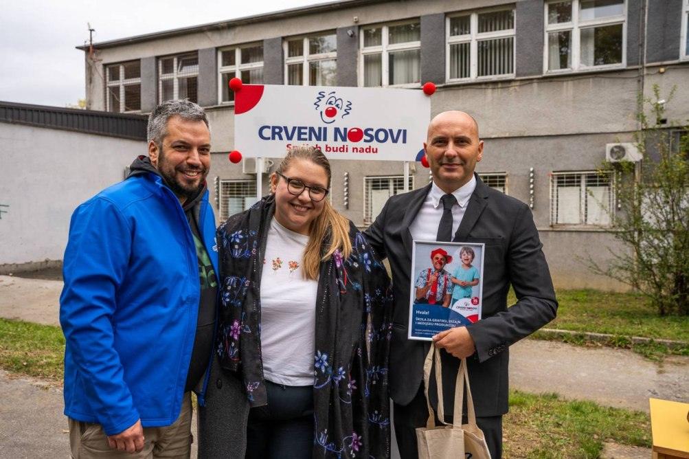 Ravnatelj Škole za grafiku, dizajn i medijsku produkciju Mislav Papec i predstavnici CRVENIH NOSOVA